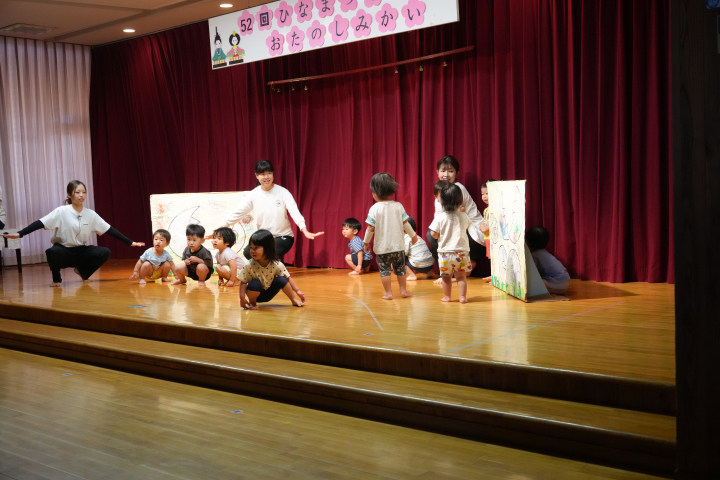 第52回『ひなまつりお楽しみ会』が開催されました。お母さん、お父さん、お家の方々に見に来てもらうことを楽しみにしていた子どもたち。