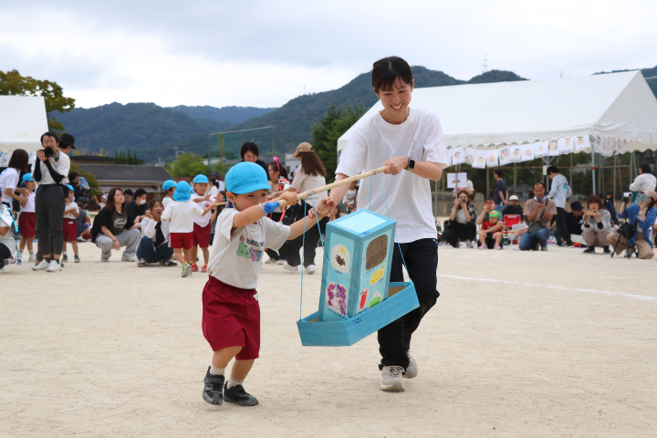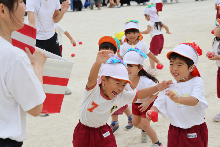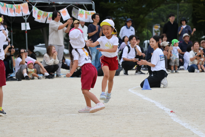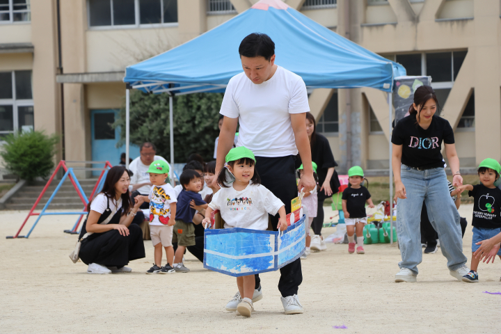 10月11日(土)天候に恵まれほど良い空の下、唐崎小学校のグランドをお借りし第52回目となる運動会を開催しました。いつもと違う場所に当園する子どもたちの表情には、普段通りの子どももいれば、緊張している子ども、いつも以上に張り切っている子と様々な姿がありました。保護者の皆様の温かい眼差しや応援に、子どもたちは元気いっぱい、キラキラ輝く笑顔を沢山見せて楽しむことができ素敵な一日となりました